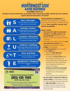 Like many of you, I am carrying this around with me and the blatantness of this political attack is loud and clear. Even with our work in the General Assembly to pass the “Trust Act” in 2017 and the “Illinois Way Forward Act” in 2021***, there is no law that prohibits local law enforcement from assisting federal authorities WHEN there is a criminal warrant. If we are concerned about true violent criminal behavior beyond just unauthorized immigration, federal authorities should get criminal warrants and work with the local authorities. Stop breaking down people’s doors, smashing car windows, and disappearing our loved ones.